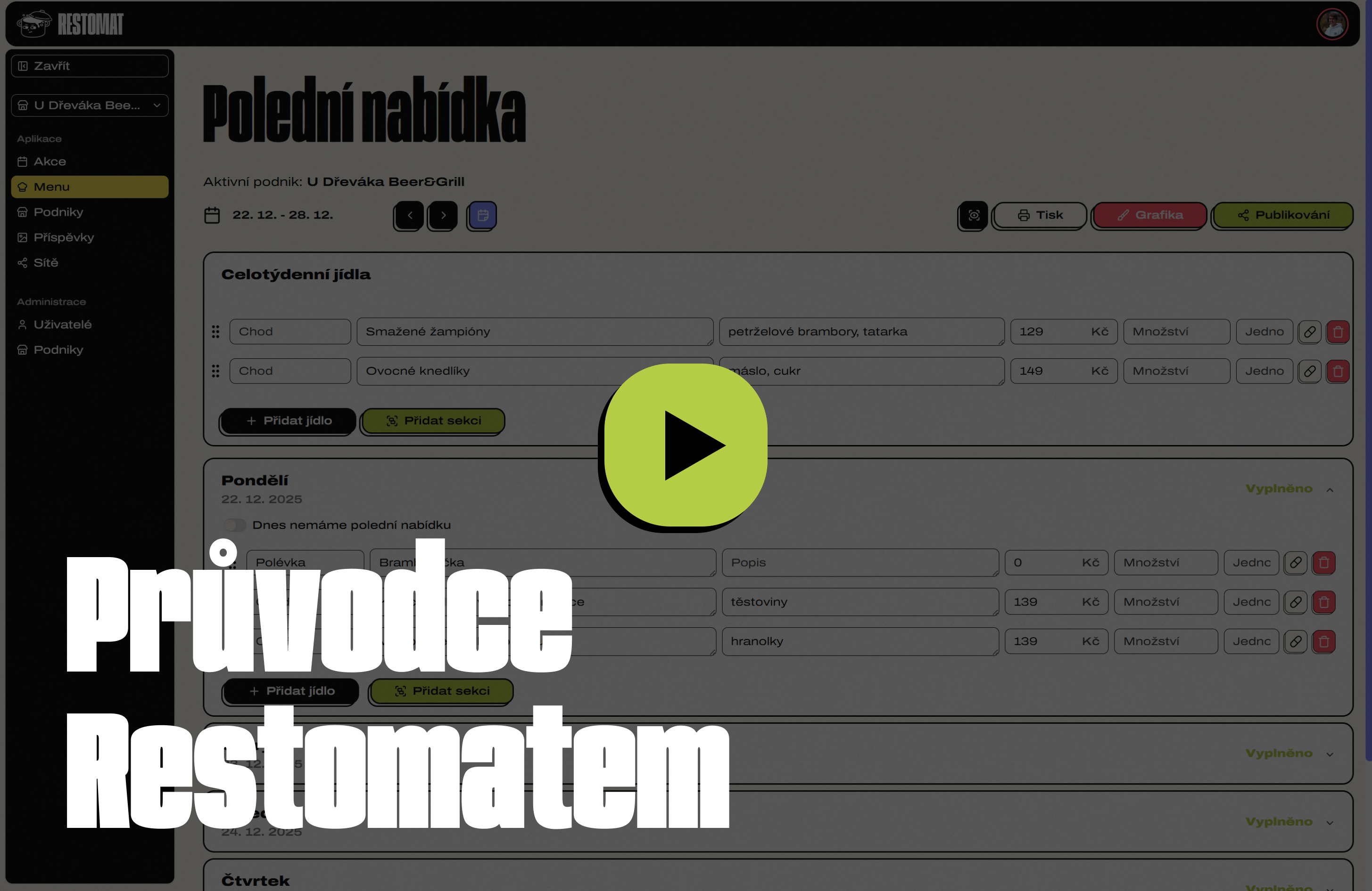 Pronájem chytrého webu - propis poledních menu a gastro akcí
